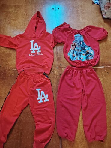 - İdman dəsti “LA” loqolu: kapüşonlu svitşot və şalvar. Kontrast loqo, elastik bel, rahat kəsim.
