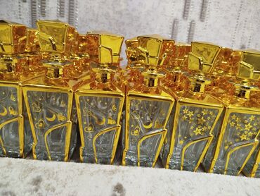 Qızılı bəzəkli şüşə ətir flakonları