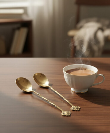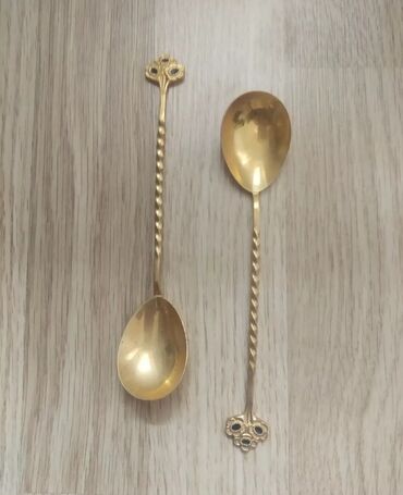 6 ədəd qaşıq dəsti - Material: metaldan hazırlanmış, qızılı rəng örtüklü. - Dizayn: sap hissəsində relyefli gül ornamentləri və klassik barokko üslubunda naxışlar. Qaşıq başı yumru-oval formadadır...