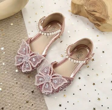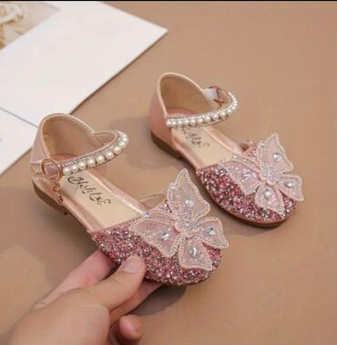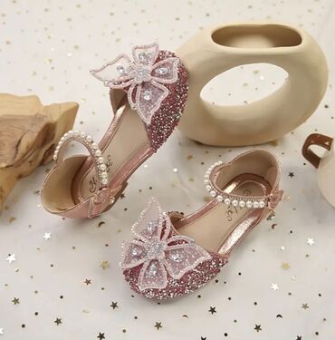 Qizlar ucun debli, sirin, parlaq, kepenek ve mirvari dekorasiyali duz ayaqqabi. Yenidir.