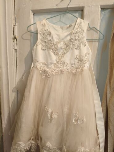 Balaca 5-6 yaşlı Qız uşaqı üçün don satılır 1 saat istifadə olunub Heçbir problemi yoxdur alındığı qiymətin yarı qiymətinə satılır. Ağ krem rəngli qız uşağı üçün ziyafət/xaçqaç donu.