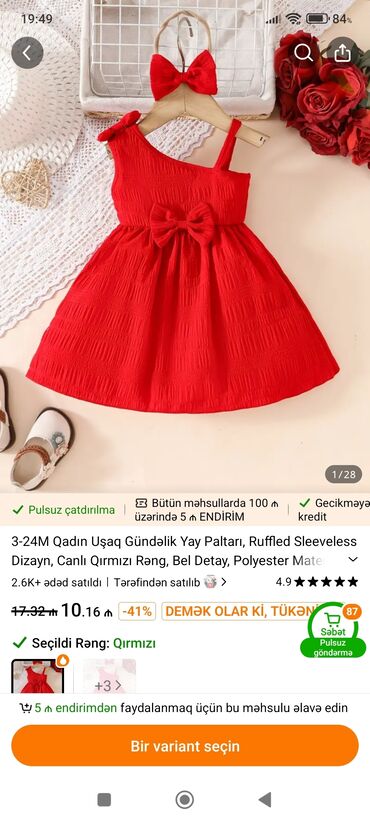 Qırmızı qız uşağı paltarı - Brend: Nazar Baby (etiket üzərində) -