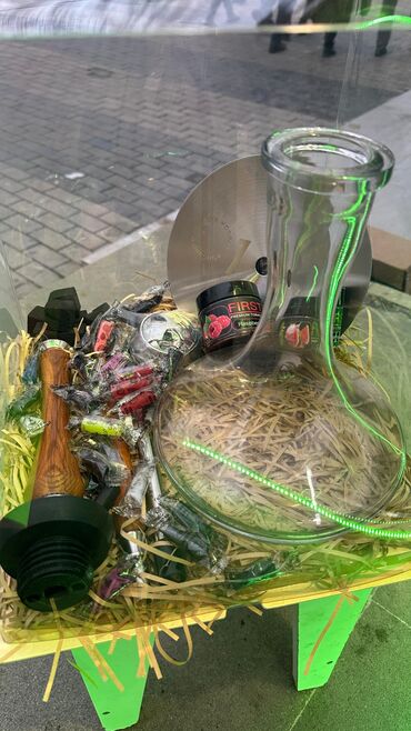 Məhsul: Nargilə və aksesuarları (şəkillərdə müxtəlif modellər) Təsvir: - Müxtəlif dizaynda nargilə modelləri: klassik qara-qızılı, dekorativ qanad formalı elementli, parlaq sarı-şüşə gövdəli və mi...