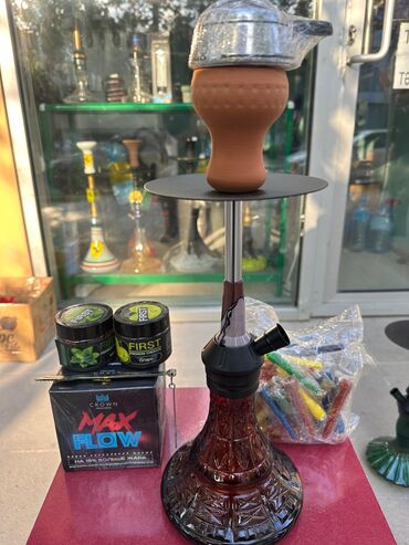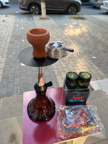 Təzə qəlyan dəsti – tüstüsü bol, istifadəyə tam hazır komplekt. Dəstəyə daxildir: - Qəlyan: klassik dizaynlı gövdə, şlanq, kasa və külqabı altlığı. - Tütünlər (ümumilikdə 7 növ/qatqı): 1) Qarpız...