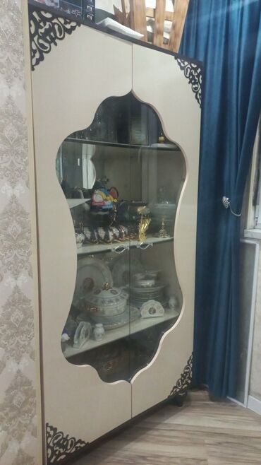 - Tərkib: 1 ədəd şüşə vitrin şkafı və 1 ədəd güzgülü bufet/komod.