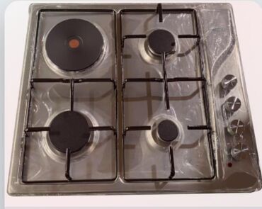 Qaz-elektrik kombinə edilmiş panel ocağı - 4 ocaq gözü: 3 qazlı brülör + 1 elektrikli halogen/rezistent disk - Paslanmayan polad səth, təmizləməsi asan - Döküm (çoxseqmentli) dəmir barmaqlıqlar – ...