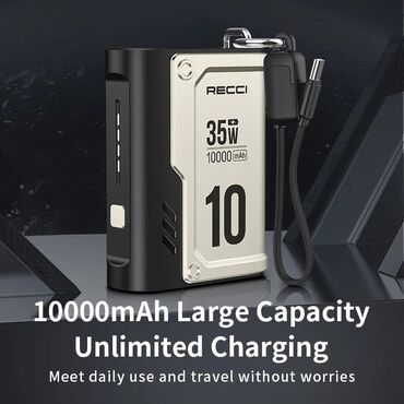 - Daxili/çıxarıla bilən USB‑C kabeli ilə klipsli daşıma sistemi RECCI 10 (35W) daşınan enerji bankı – 10000 mAh böyük tutum