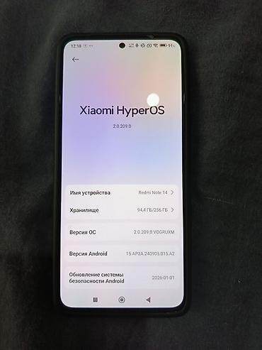 Xiaomi Redmi Note 14 – HyperOS ilə - OS: Xiaomi HyperOS 2.0.209.0 (VOGRUXM) - Android versiyası: 15 (göstərilən build: AP3A.240905.015.A2) - Təhlükəsizlik yeniləməsi: 2026-01-01 - Yaddaş: 256 GB d...