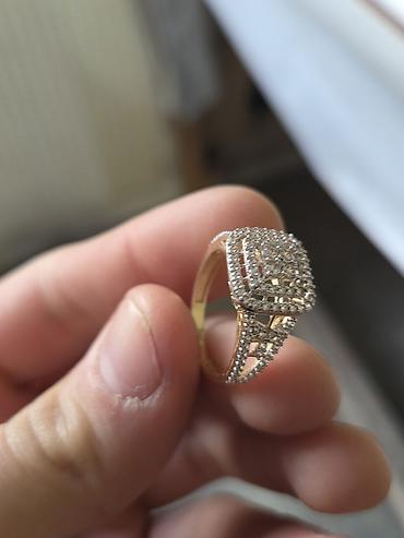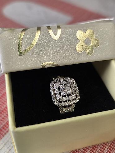 - Daşlar: Çoxsaylı parlaq ağ daşlarla (mikro pave) işlənmə; mərkəzdə dörd daşlı çarpaz kompozisiyalı motiv, ətrafında ikiqat halo; qaşlı bant hissə