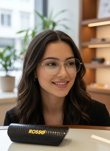 ROSSO oftalmoloji eynək linzələri və aksesuarları - Brend: ROSSO (Ophthalmic Lenses) - Məhsul: optik eynək linzələri ilə klassik metal çərçivələr - Linzalar: gündəlik istifadə üçün şəffaf, işıq ək...