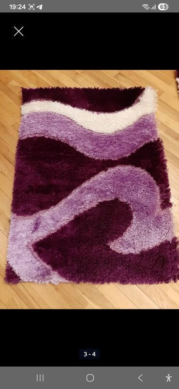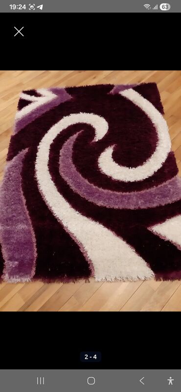 Xalı – 2x3 m ölçü Qiymət: 70 AZN - Yüksək tüklü (şaggy) tekstura - Rənglər: bənövşəyi, açıq bənövşəyi və ağ mozaika/blok naxış - Yumşaq, toxunuşa rahat, ayaqaltı isti - Otaq, qonaq otağı v...