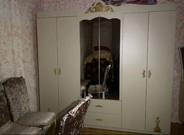 Yataq otağı dəsti – modern və eleqant dizayn Tərkibi: - 4 qapılı, güzgülü qarderob (daxildə asılqan bölmələri, rəflər və şkaf bölmələri) - İki tumba (yan stolçiklər, çekmecəli) - Komod/şkaf güzgü ...