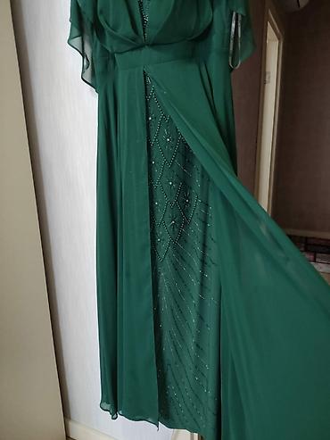 Bir defe ostifade olunub S M razmere uyğundur ela veziyyetdedi Gümüşü rəngdə, tam uzunluqda parıltılı axşam/gecə geyimi. - Material: sıx şəkildə işlənmiş paiyetlir (sequin) parça, işıq altında güc...