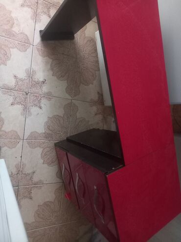 Dairəvi güzgülü və mərkəzi kabinetli, səliqəli iş siyanın yuxarı hissəsi dəbli mərmər effekti ilə dizayn edilib, bu da ümumi estetikaya zəriflik qatır. guzgu-mebel 3 eded ref 600 manat temiz mer m...