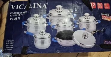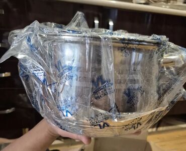 Paslanmayan poladdan qab-qacaq dəsti - Parlaq inox gövdə, qızılı tonlarda metal qulplar və qapaq düymələri - Şüşə qapaqlar: buxar çıxışı üçün ventili olan, içi görmək imkanı - Qazan və tava kombin...