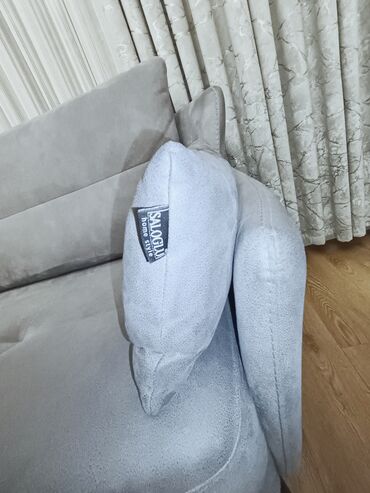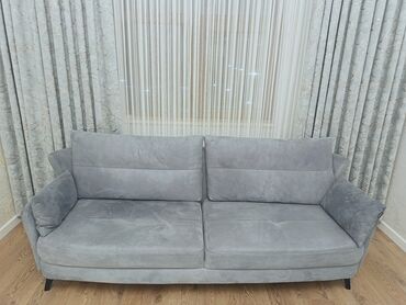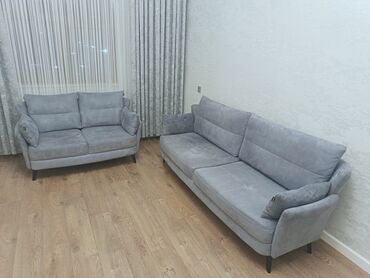 Mebel dəsti PULSUZ - Divan: Krem rəngli, yumşaq parçalı, klassik qabarıq bel hissəli model. Ön hissədə dekorativ qara detallar. Alt hissədə çəkicilər üçün nəzərdə tutulmuş tutacaqlar görünür. Geni...