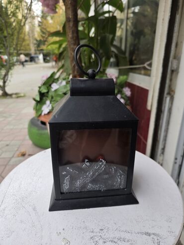 - 1 ədəd dekorativ mini fənər: mat qara korpus, dörd tərəfi şəffaf panel, üst hissədə asma halqası. Ön hissədə odun/kömür effekti ilə dekorativ “ocaq” görünüşü (işıq effektli dekor üçün uyğundur). Rəf, masa və ya giriş dekorunda istifadə oluna bilər.