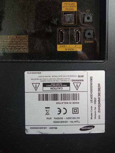 Filmlər, konsol və TV qurğuları üçün ideal 40" Samsung LED televizor. Seriya və model məlumatı arxa etiketdə göstərilib.