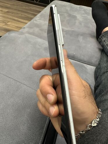 - Ekranda mərkəzi “punch‑hole” ön kamera; barmaq izi skaneri ekranın içində