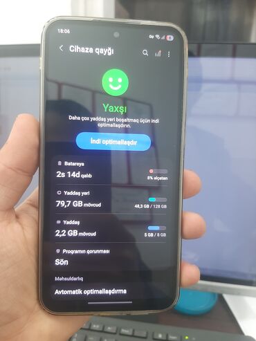 Samsung a55 128gb yaddas 1200 manata alınıb,hec bir problemi yoxdu Qutusu usdunde verilir real alici olsa original adpterde verecem,iphonele barter etmek olar(iphone 11 le barter etmek isteyen yazsin