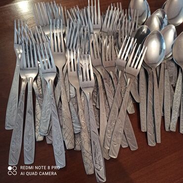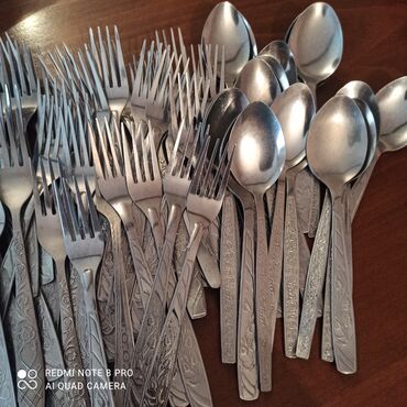 Almaniyadan alınıb.Brend mağazadan.Təmiz polad.1qutuda 1çay qaşığı q xörək qaşığı 1 çəngəl 1 bıcaq var.Arxa tərəfində zavodun möhürü var.30 avroya alınıb