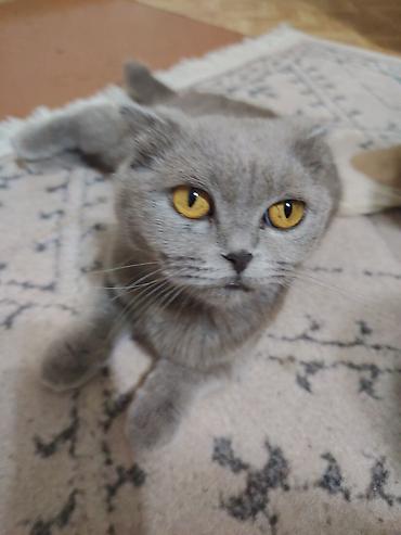 Şotland qıvrımqulaq balası (Scottish Fold) – boz rəng - Yaş: baladır - Rəng: vahid boz (blue/grey), sıx və yumşaq tük örtüyü - Qulaqlar: tipik qıvrılmış - Gözlər: iri, ifadəli - Xarakter xüsusiyyə...
