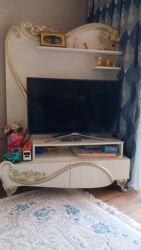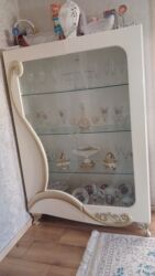 Klassik üslubda qonaq otağı mebel dəsti Tərkibi: - Şüşəli servan/vitrin: ikiqat şüşə qapılı, içəridə bir neçə şüşə rəf, kənarlarda dekorativ gümüşü oymalar, yuxarıda ornamentli taxtabaşı, nazik ay...