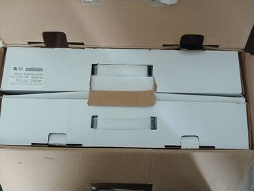 Qutulu komplekt; montaj ayaqları, vintlər, kabellər və adapter qutudadır. Qutunun üzərindəki şəkillərdə funksiyalar və tətbiq sahələri göstərilib.