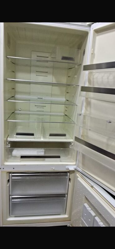 - Üst şkaf: çoxsaylı tənzimlənən şüşə rəflər, qapıda geniş saxlama bölmələri və yumurta yuvaları