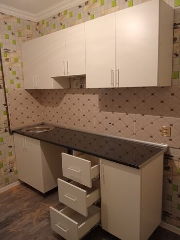 Sifarişlə mətbəx dəsti, Özü çəkən petlələr, Sadə laminat, Kredit yoxdur, Pulsuz çatdırılma, Rayonlara çatdırılma