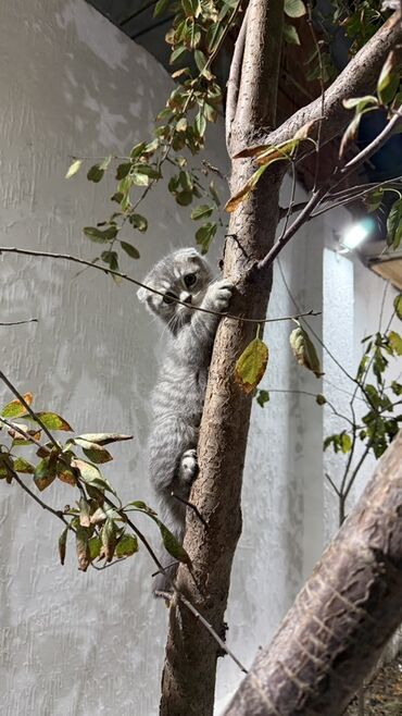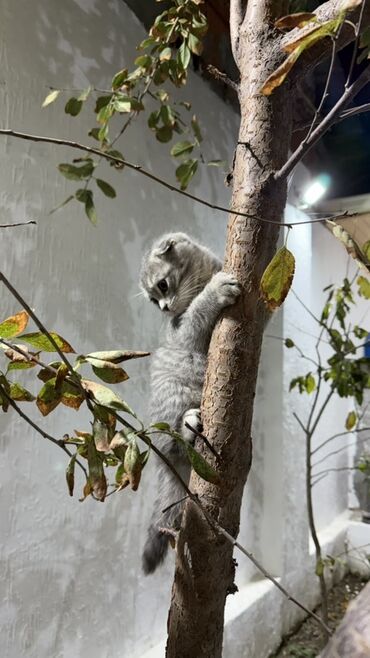 Skottiş Fold balaları – qıvrıq qulaqlı, iri yuvarlaq gözlü, yumşaq tüklü, sakit və mehriban xasiyyətli ev pişikləri. Xüsusiyyətlər: - Cins: Scottish Fold (qıvrıq qulaq) - Rənglər: gümüşi tabby, tü...