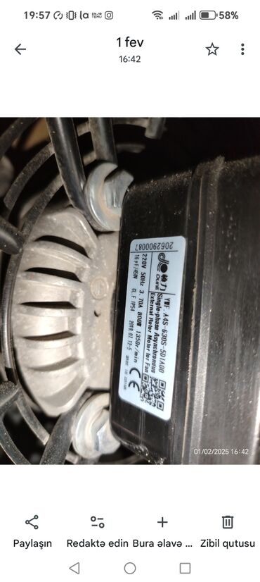 - Mühərrik: Single-phase Asynchronous, External Rotor