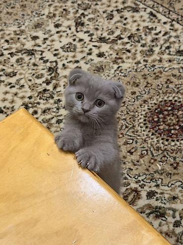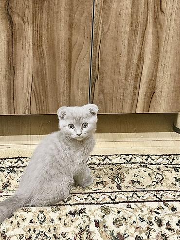 Skottiş Fold - Cins: Scottish Fold. 14 fevralda doğulub. Çox ağıllı və mehribandı. Qum tərbiyəsi var. Quru yemək yeyir