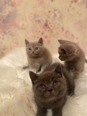 Britan balaca pişik balaları (Erkək və dişi mövcuddur) - Zərif, bərabər tünd-boz (mavi) rəngli, qısa və sıx tüklü bala pişiklər - Yumru üz cizgiləri, kiçik qulaqlar və iri ifadəli gözlər - Sakit,...