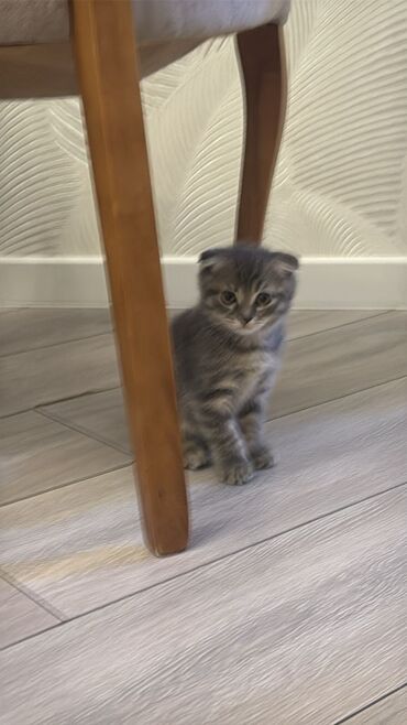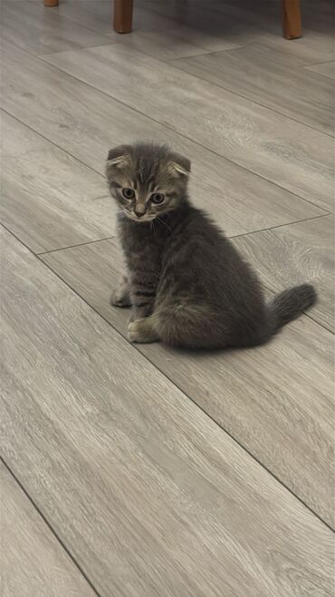 Scottish fold miks Xüsusiyyətlər: - Yaş: baladır (yeni doğulmuşdan bir qədər böyük) - Rəng: ağ-boz-qara qarışıq, pəncələri və sinəsi ağ - Qulaqlar yumuşaq aşağı əyimli, gözləri iri və mavi-boz t...