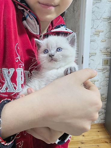 Brit qısa tüklü (British Shorthair tipli) balalar - Rənglər: tam ağ (başda balaca boz ləkələr) və gümüş-bənövşəyi tabby (boz zolaqlı). - Göz rəngi: mavi-boz tonları. - Yumuşaq, sıx, qısa tüklü ört...