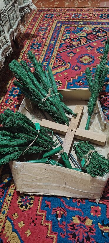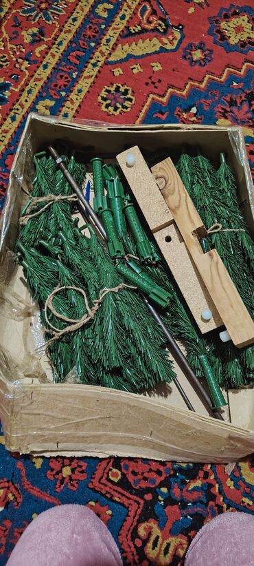 İstifadə: Yeni il ağacının ev şəraitində yığılması üçün; budaqları təlimata uyğun mərtəbələrlə yerləşdirin, altlığı qurub metal ştanqı bərkidin. Retro sovet dekoru sevənlər, foto/videodardekor fonu və kolleksiyaçılar üçün uyğundur.