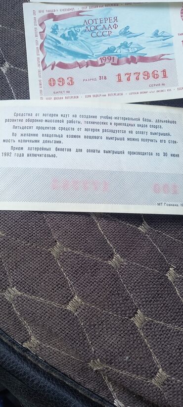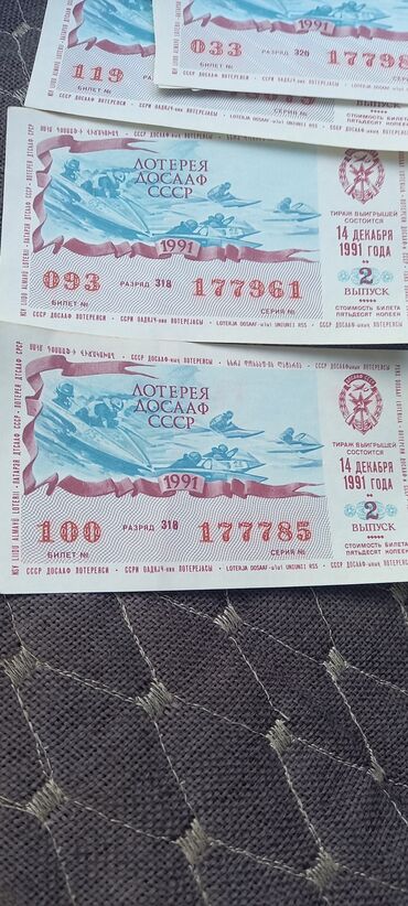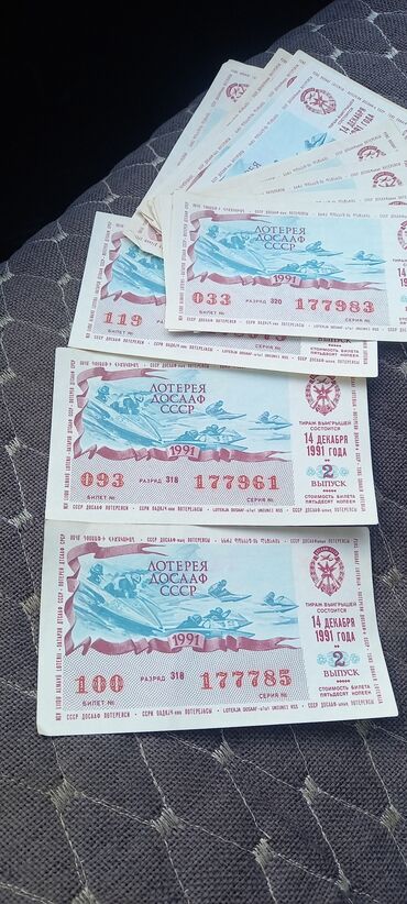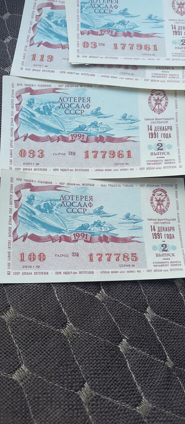 - Orijinal “Лотерея ДОСААФ СССР” biletləri, 1991-ci il buraxılışı.