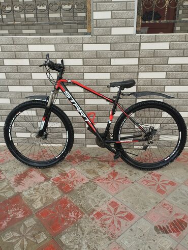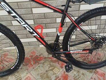 START markalı, qara rəngli dağ velosipedi, qırmızı və ağ detallarla bəzədilib. Velosipeddə güclü şinləri və rahat oturacağı var. Şəhər gəzintiləri və off-road sərgüzəştləri üçün uyğundur.