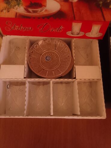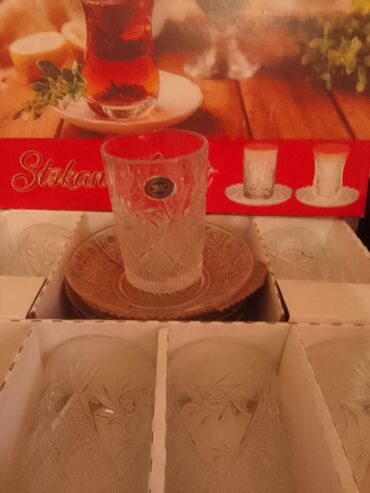 - Komplekt: 6 ədəd şüşə çay stəkanı + 6 ədəd boşqabcıq (nəlbəki)