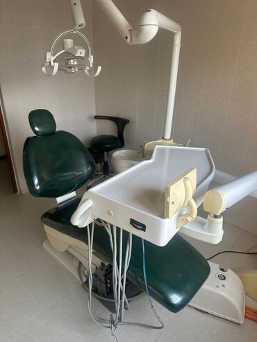- 2 ədəd stomatoloji kreslo komplekti: birincisi tünd yaşıl, ikincisi mavi rəngdə.