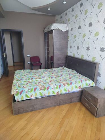 Kirayə üçün tam təchiz olunmuş 2 otaqlı mənzil - Yataq otağı: iri ölçülü çarpayı, geniş 3 qapılı güzgülü gardırob, bədii işləməli başlıq və şamdanlı tavandan asma çilçıraq. Otaqda dekorativ kamin ...