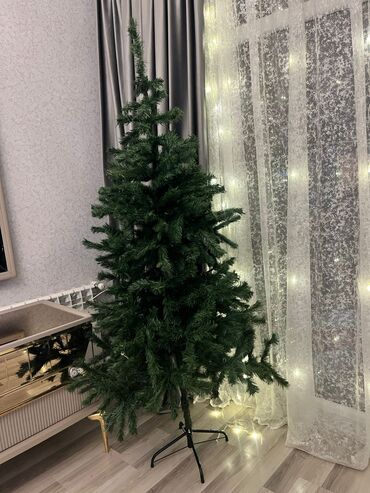 Süni şam ağacı ‼️‼️‼️TƏCİLİ SATILIR.. - Material: sıx plastik iynələr, yaşıl rəng - Hündürlük: təxminən 1,2–1,4 m (masa üzərində çəkilmiş fotoya əsasən) - Konstruksiya: 3 ayaqlı metal dayaq, sabi...