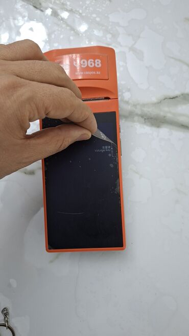 - Ekranlı Android əsaslı POS qurğusu (ekranda “Power Button”, “Volume Key”, “USB Debug” göstəriciləri).