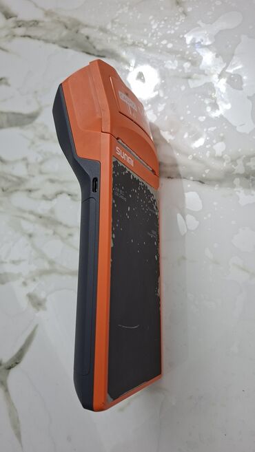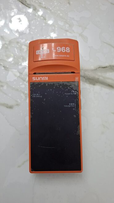 SUNMI mobil POS terminali – rəngli narıncı korpuslu, inteqrə olunmuş termal printerli model.