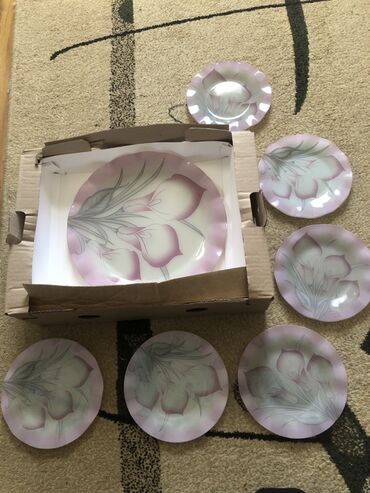 - Komplekt: 7 ədəd (1 ədəd iri servis boşqabı + 6 ədəd dessert/şirniyyat boşqabı)