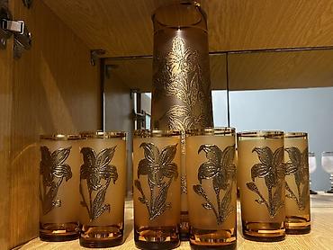 Qızılı-çəhrayı şüşə içki dəsti Gence şehi aşağı yeri var - Tərkib: 1
