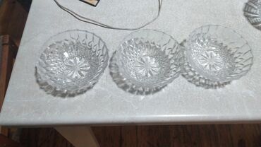- 3 ədəd kiçik salat/desert qabı: ulduzvari alt naxışı və rombvari kəsimlər, dairəvi forma.