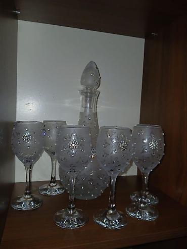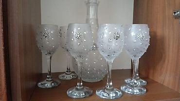 - Qrafin: zərif boğazlı forma, eyni üslubda bəzədilib, çıxarılan şüşə tıxac