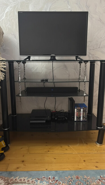 LG televizor və şüşə TV stendi dəsti. Birlikde 300 manata satilir Xüsusiyyətlər: - Televizor: LG, düz ekran, ön paneldə sensor düymələr. Ekran diaqonalı təxminən 32–37 düym aralığında (çərçivəli mo...